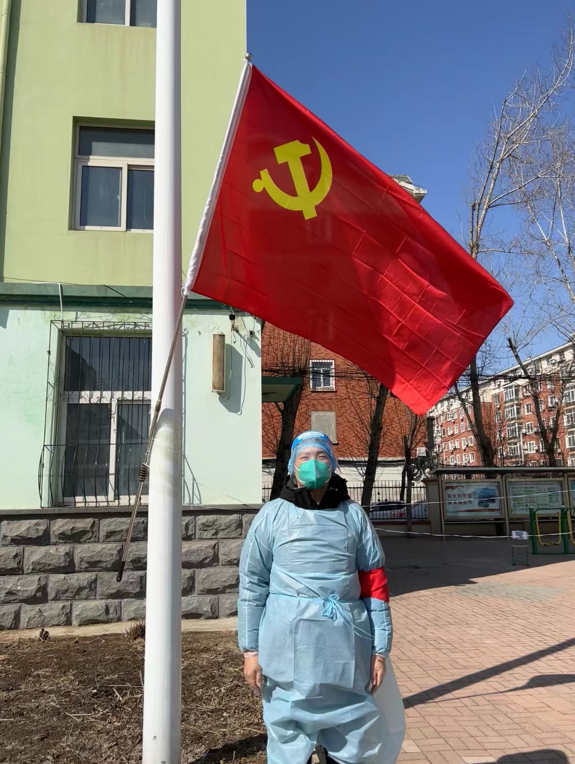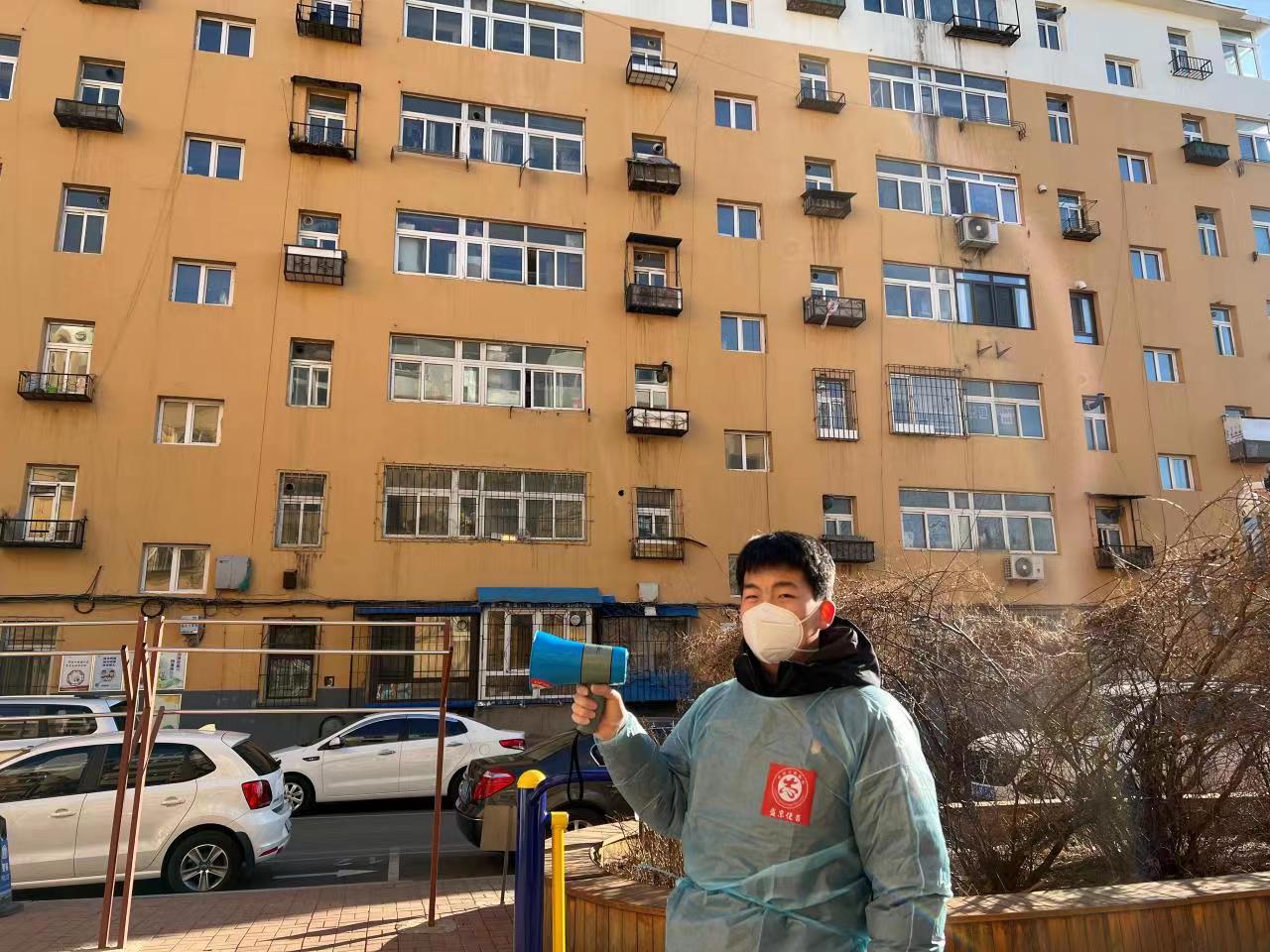 3月14日,为响应沈阳市政府号召,我校通信工程学院19级学生预备党员苏得峻充分发挥党员先锋模范作用,积极加入沈阳当地疫情防控工作,让鲜红的党旗高高飘扬在疫情防控第一线上空。