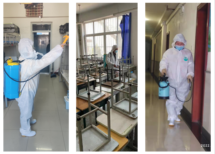 (一)在保障日常工作的同时,抽调专人消杀。严格按照消毒要求,有条不紊地对教室、楼道、宿舍、核酸检测点等各个角落进行了彻底的、全方位、无死角的喷洒消毒并做好记录。
