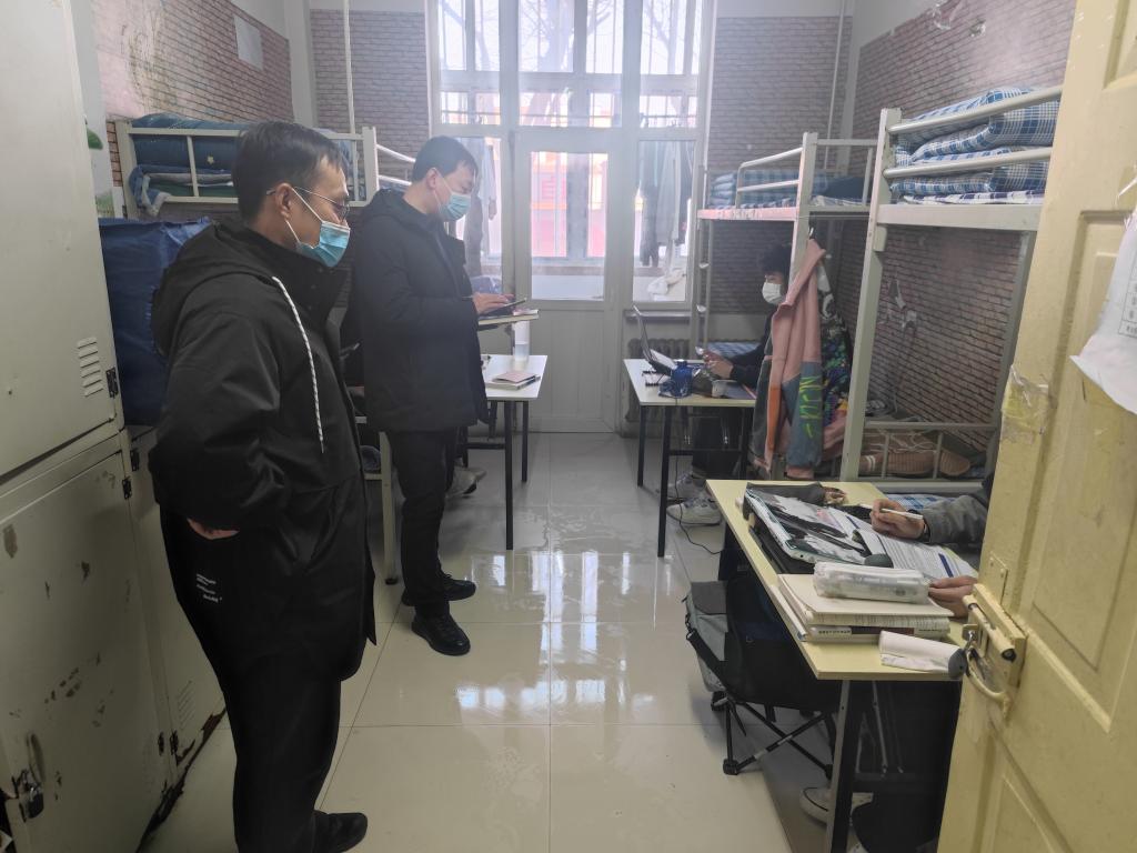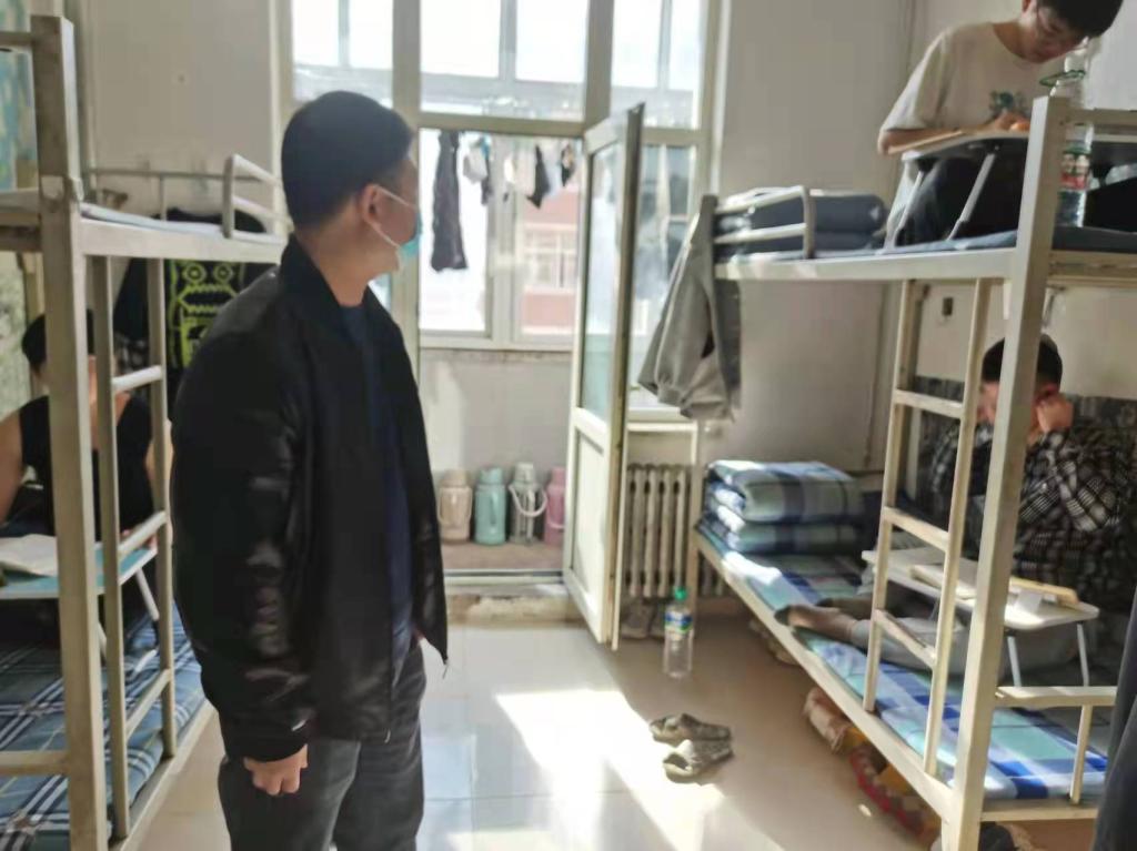 住校教师与学生同吃同住,每天在学院书记的带领下,深入寝室查看学生学习状况,解决学生遇到的问题,疏导学生心理,24小时不间断为学生提供各项帮助,保证学生思想、学习、生活一如既往。
