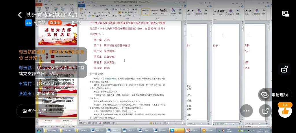 此外,学校还认真组织开展校院二级理论学习中心组学习和党支部政治理论学习,将习近平总书记关于总体国家安全观的重要论述纳入学习内容,组织全体党员自学《中华人民共和国国家安全法》《中华人民共和国数据安全法》《中华人民共和国保守国家秘密法》《中华人民共和国密码法》《中华人民共和国生物安全法》和《中华人民共和国核安全法》等法律法规。