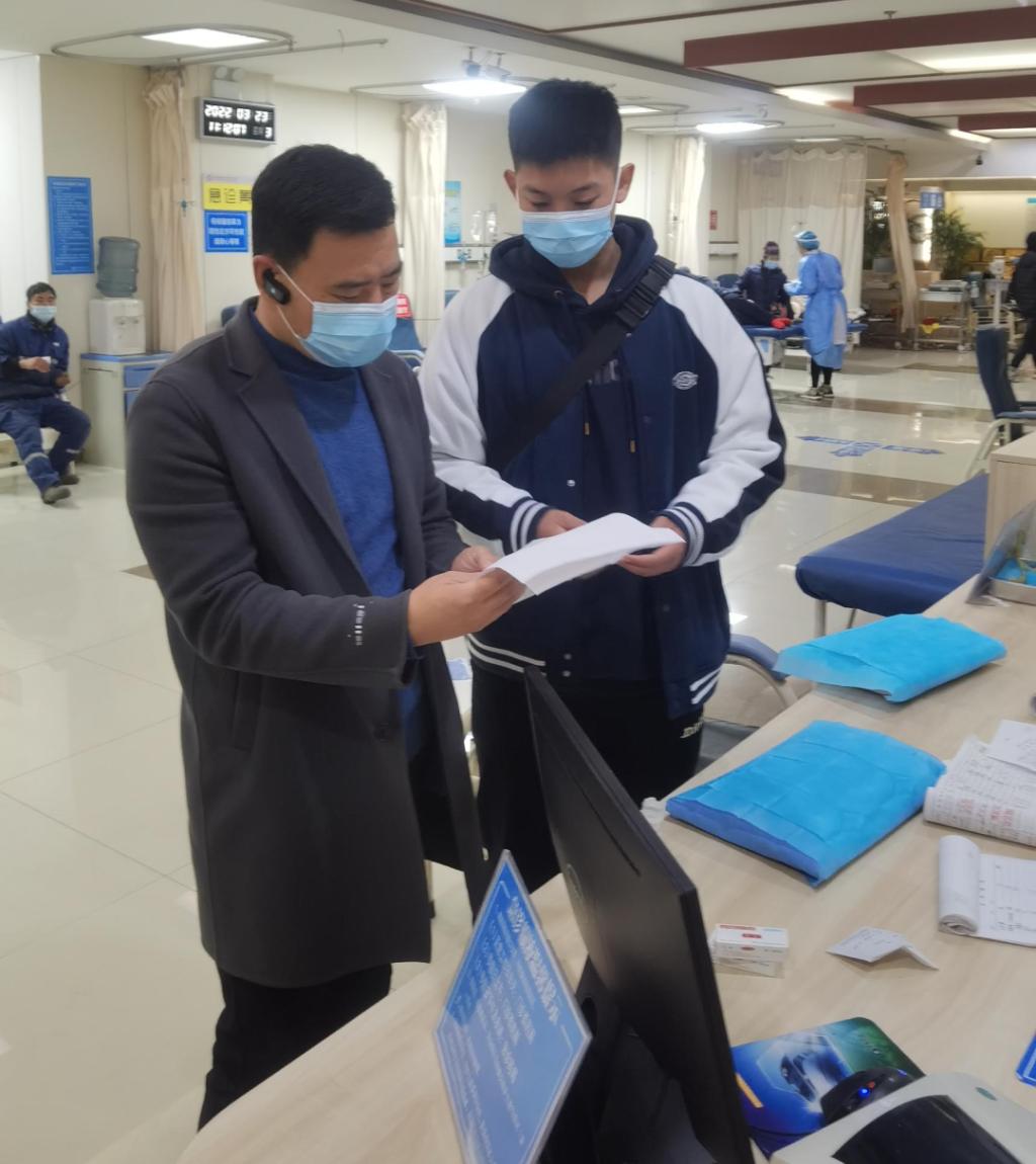 因疫情防控要求,医院普通门诊就诊及陪同人员需持48小时内核酸证明方能进入医院,每次陪同就诊的老师会在前一天早上8点到学校门口进行核酸检测,以便可以在第二天陪同学生就医。