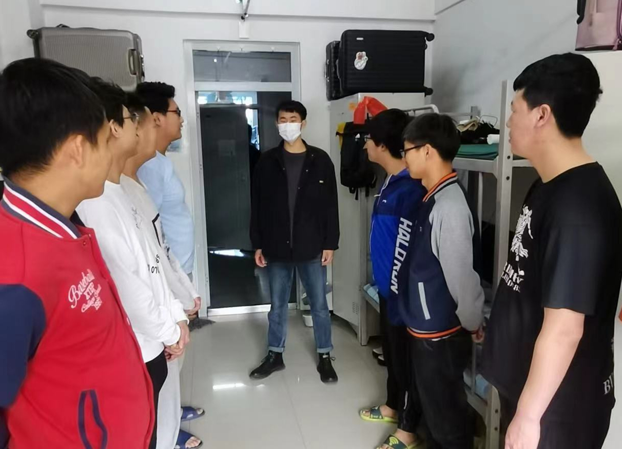 在网格化管理期间,贾宇作为学生干部并担任楼层负责人,每天都会在楼梯口进行站岗,严格把控出入寝室楼人员,在本楼层的指定时间引导学生前往食堂、超市等生活场所,并在每一次回寝后清点人数,做好人员管理。跟随舍务部成员做好每天晚间查寝工作,清查人数,做好学生健康情况检测。为更好的配合学校政策,防止疫情的进一步肆虐。面对疫情,迎难而上,冲锋在前。