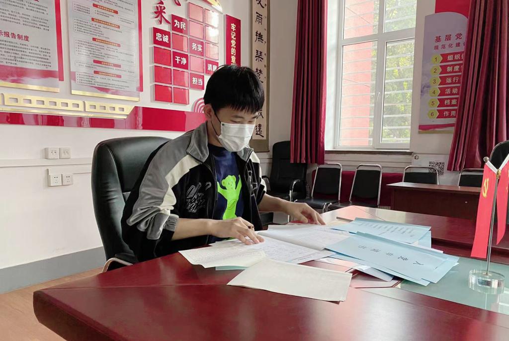 在网格化管理下,张文迪同学时刻关心同学心理健康,对学生出现的心理问题,及时疏导解决。她还时刻关注网络平台的舆论情况,引导同学们不信谣、不传谣,营造清朗网络空间,并及时地向学院老师反馈学生的意见。同时张文迪还积极投身于学院全员核酸检测的辅助工作中,认真学习防护知识,维护秩序,认真核对人员名单,提醒大家按要求佩戴口罩,以减轻医护老师的工作压力,引导检测,提高工作效率。