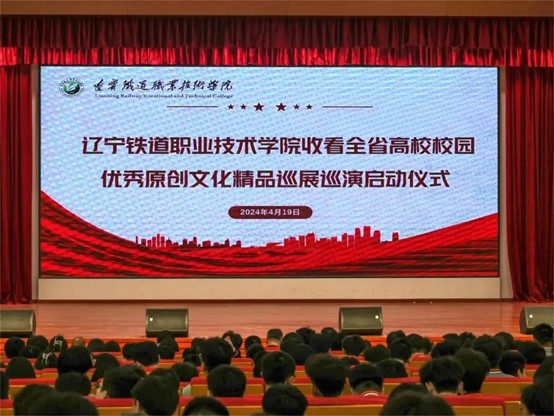 4月19日,学校党委书记曾庆军、副校长赵明,党委宣传统战部、党委学生工作部、团委负责人,各二级学院书记、副书记、辅导员和千余名学生分别在凌河校区、双凌校区集中观看了全省高校校园优秀原创文化精品巡展巡演启动仪式。
