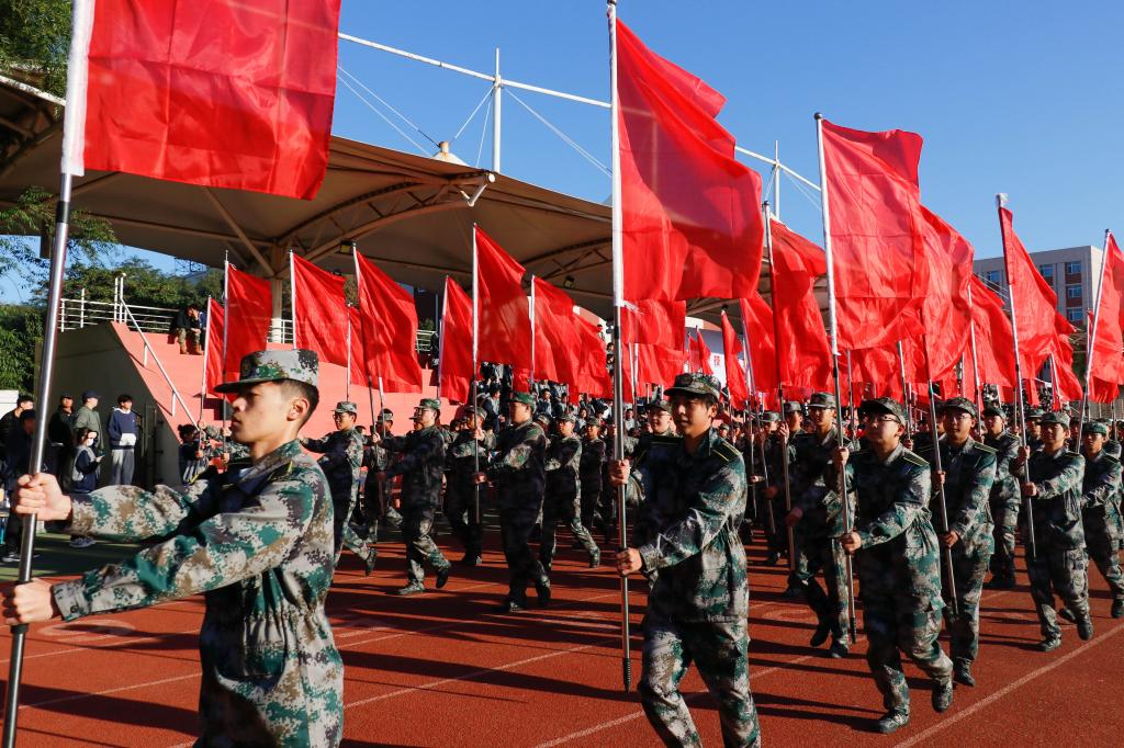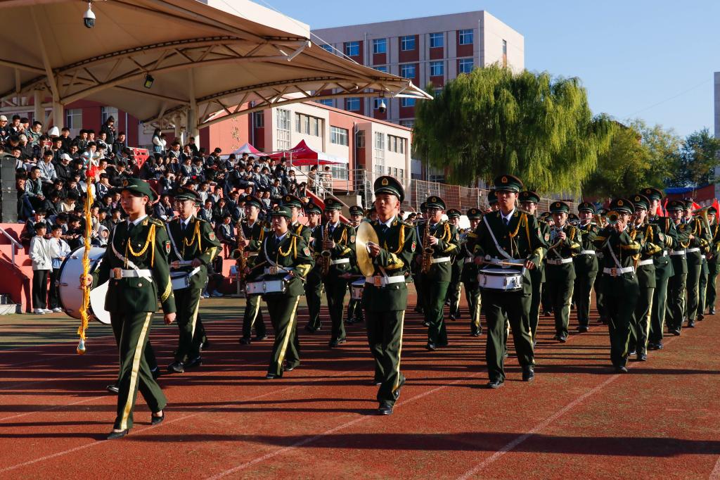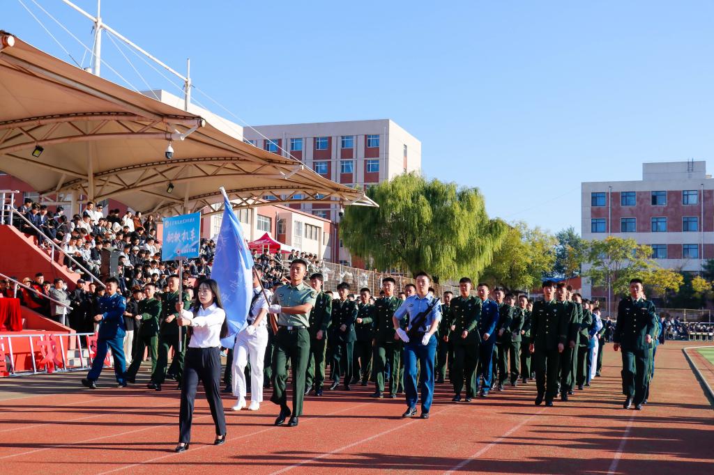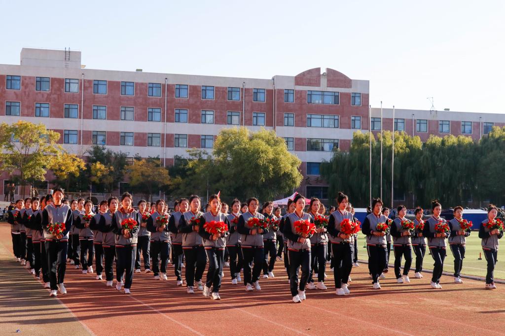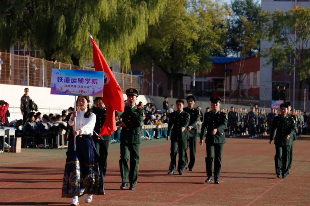 在国旗护卫队的引导下,军乐方队、红旗方队、花环方队、鲜花方队、裁判员方队以及各学院代表方队,迈着矫健的步伐依次走过主席台,接受大会主席团的检阅。他们步伐整齐、口号嘹亮,以饱满的精神面貌,充分展现了辽铁院师生的蓬勃朝气和昂扬斗志。
