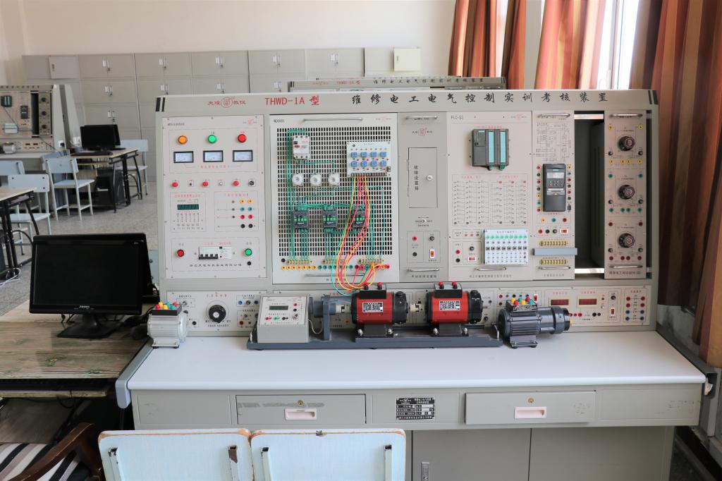 维修电工实训室始建于2012年10月,实训室配备12台实训设备,可完成学生电机与电气控制实验及实训任务,可以实现基于PLC的三相异步电动机的点动控制、自锁与互锁控制、顺序控制、多地控制等,并且具有天塔之光,自动化流水线等拓展实验功能。