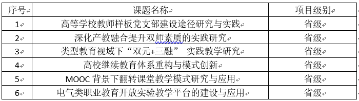 电气信息学院深化产教融合不断提升教科研水平,取得了丰硕成果。获得各类各级教学成果奖多个,主持参与完成省市级教科研课题20余项。主要成果如下: