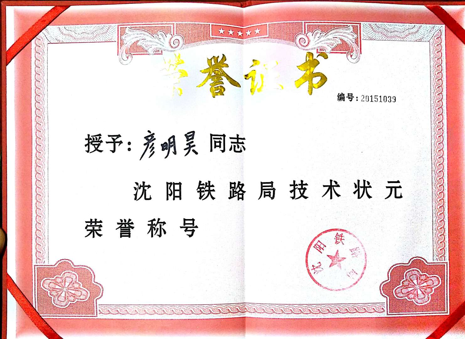 颜名昊,男,汉族,1994年出生,2013年毕业于辽宁铁道职业技术学院,参加工作以来,先后从事过车载信号工、车载调度员、调试工队工长、技术专职等工作,先后获得过沈阳铁路局ATP技术能手、沈阳铁路局ATP技术状元、沈阳电务段优秀共产党员、铁路总公司优秀青工、全路ATP技术能手等荣誉。