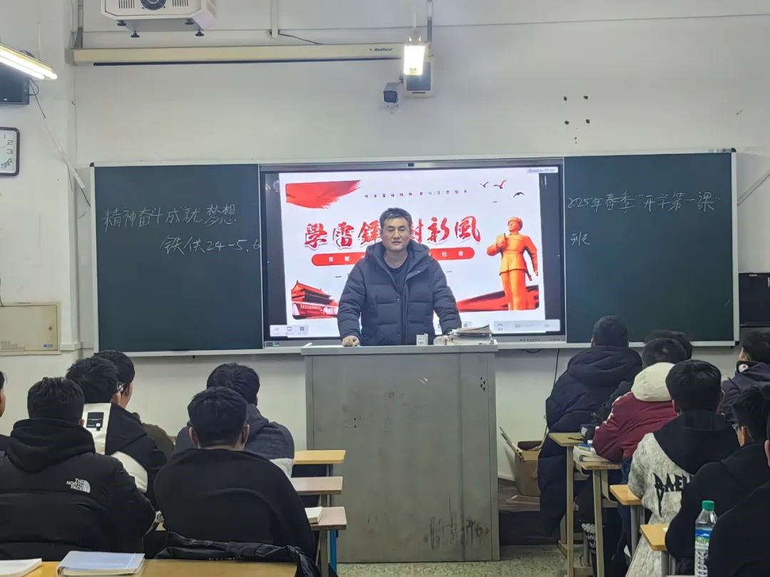 在“奋斗成就梦想”的环节,班主任讲述了身边铁路人通过不懈奋斗实现梦想的案例,并引导同学们思考自身梦想以及如何通过努力实现。同学们纷纷制定新学期的学习计划,明确努力方向,立志以奋斗为笔,书写青春篇章。
