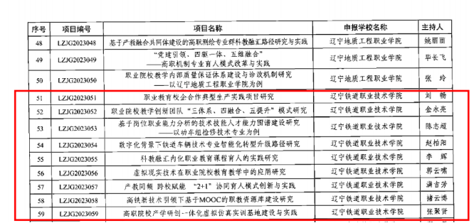 日前,辽宁省教育厅印发《关于公布2023年度辽宁省职业教育与继续教育教学改革研究项目名单的通知》(辽教通[2024]158),我校推荐10项,获批立项9项,立项成功率90%。