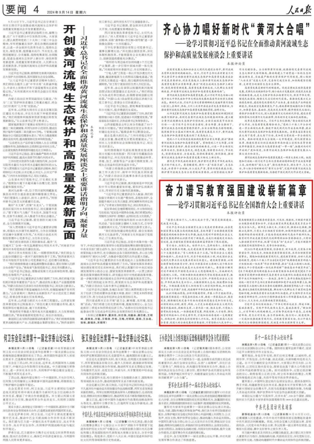 9月9日至10日,全国教育大会在北京召开,习近平总书记出席大会并发表重要讲话。一起来看《人民日报》评论员文章《奋力谱写教育强国建设崭新篇章——论学习贯彻习近平总书记在全国教育大会上重要讲话》。