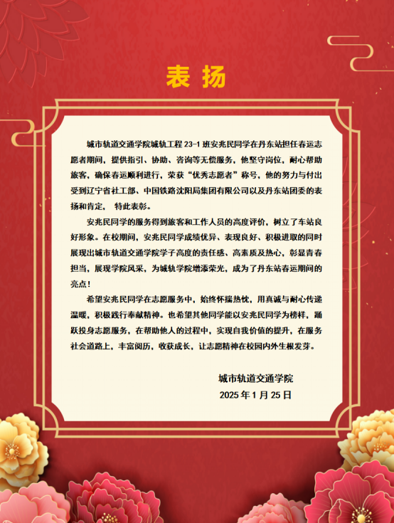 城市轨道交通学院 通报表扬