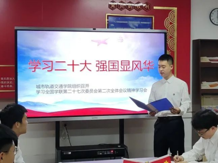 4月15日至16日,全国学联第二十七届委员会第二次全体会议在京召开。为深入学习贯彻全国学联第二十七届委员会第二次全体会议精神,更好地团结带领广大同学学习贯彻党的二十大精神,加强对学生思想建设,扩大青年队伍使其充满生机活力走在时代前列。5月30日,城市轨道交通学院学生会在感恩楼104集中学习全国学联第二十七届委员会第二次全体会议精神。本次会议由城市轨道交通学院主席团成员张芷鑫同学主持。
