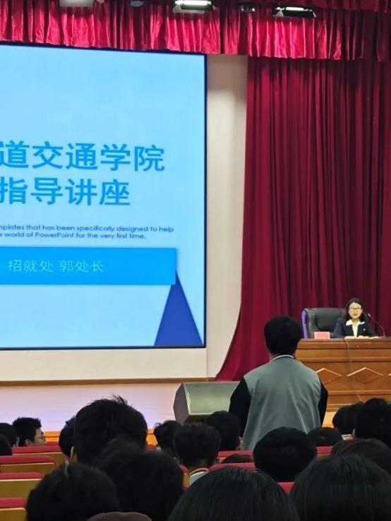 招生处郭处长的讲座更是语重心长,主要围绕了每个大学生的专业去向和未来的职业规划进行讲解,不仅如此,也向每个新同学介绍了各个路局和地铁公司用人招人的要求和招聘习惯。希望每个大一新生可以借鉴了解,利用大学这三年时间好规划自己、改造自己,在未来都能进入自己心仪的公司。
