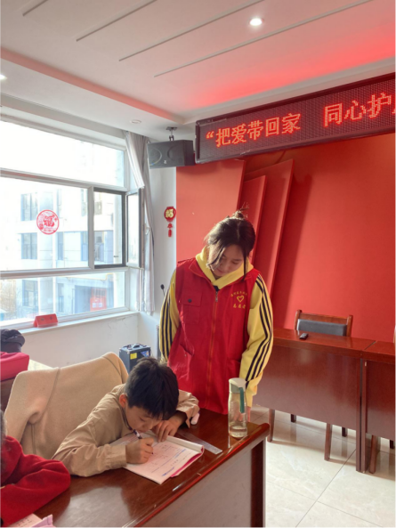 城市轨道交通学院城轨工程24-1的于普州在兴旺社区“青芽社”寒假红色托管班担任志愿者。通过组织丰富多彩的学习与娱乐活动,从而激发孩子们的学习兴趣,培养他们的团队合作能力和社交技巧。鼓励孩子表达,锻炼表达与倾听能力。