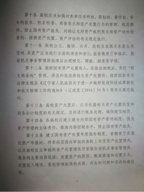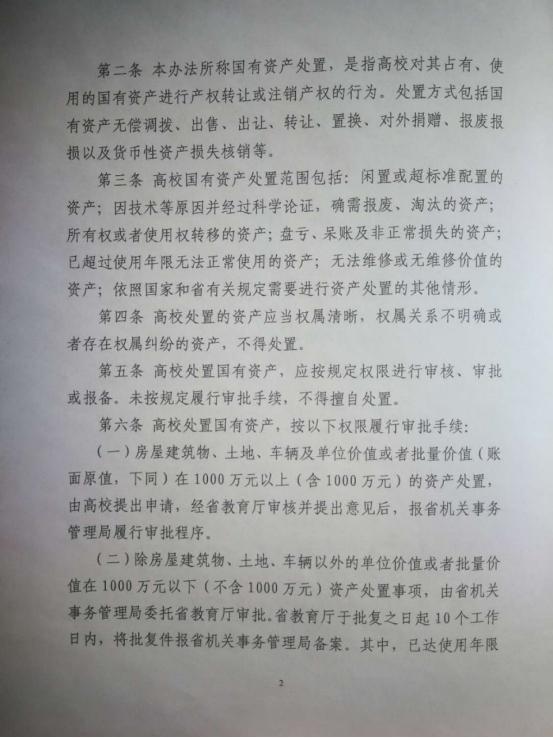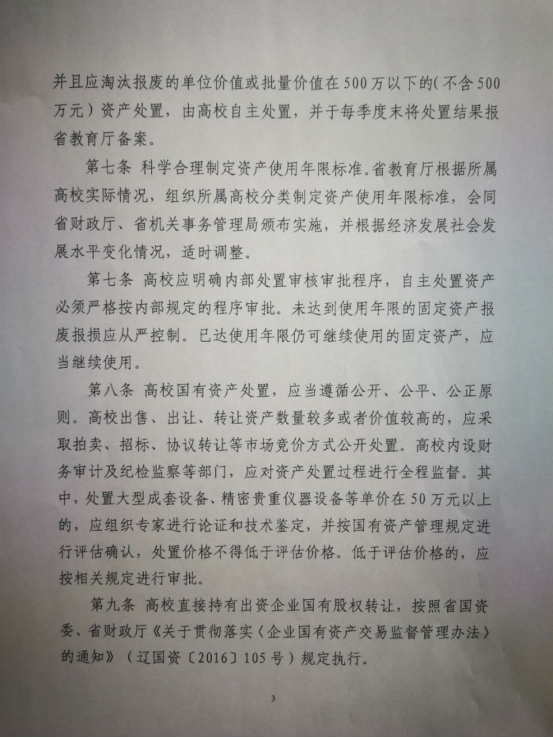 辽宁省省属高等学校国有资产处置管理暂行办法