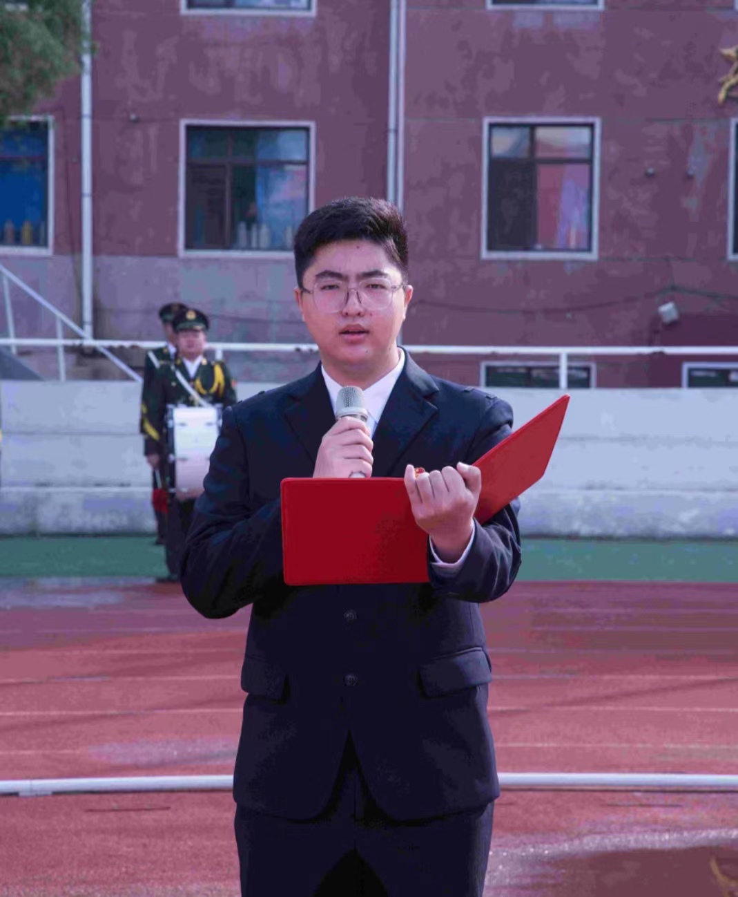 仪式上,全体师生整齐列队,现场气氛隆重热烈。在嘹亮的指挥口令下,国旗护卫队员英姿挺拔、步伐铿锵,护卫国旗入场,仪仗标兵列队国旗台旁、持枪伫立。伴随着《义勇军进行曲》振奋激昂的旋律响起,鲜艳的五星红旗冉冉升起、迎风飘扬。马克思主义学院副院长张盈盈、铁道车辆学院动车22-1班董钦维同学,分别作为教师党员和学生党员代表作国旗下演讲,汇报党纪学习教育成果,颂扬党的丰功伟绩,抒发对党的深厚情谊。