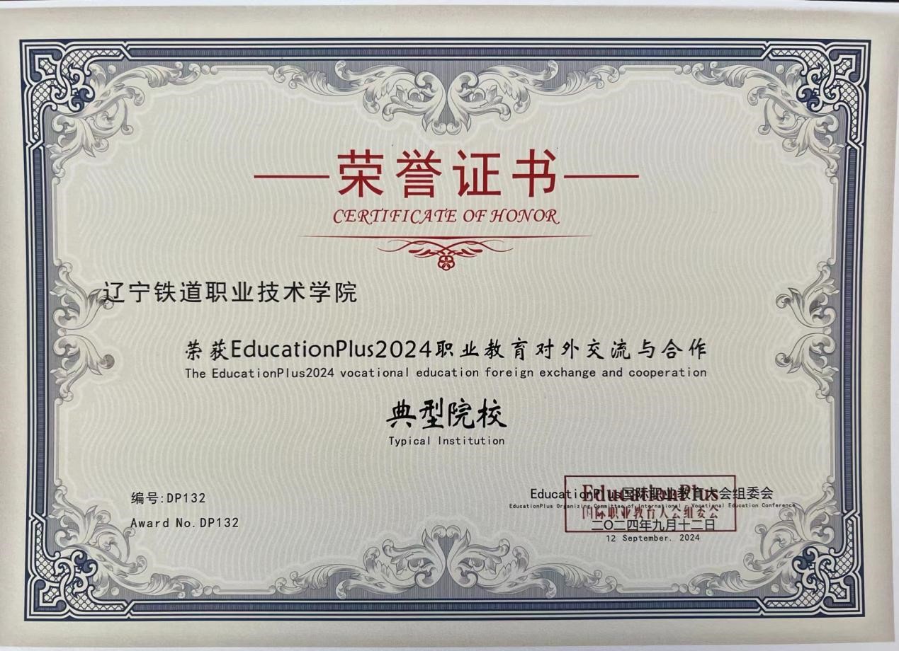 会议期间,学校荣获“EducationPlus2024职业教育对外交流与合作典型院校”称号;国际化办学案例《培养轨道交通国际化人才 助力“一带一路”多元化发展——辽宁铁道职业技术学院国际化办学实践与探索》获评“2024年走向世界的中国职业教育方案——共建‘一带一路’职业教育合作成果”优秀案例。在大会期间举办的第七届“中文+职业技能”学术研讨会暨“一带一路”国家院校和企业交流协会第五次中方理事会上,学校当选丝路文化交流发展联盟常务理事单位。