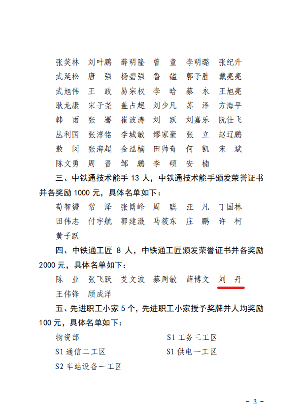 2021届铁道通信与信息化技术专业毕业生刘丹同学在浙江省人民政府主办的2024年第三届浙江技能大赛中脱颖而出,荣获信息通信线务(光缆线路)项目优胜奖,被浙江省人力资源和社会保障厅认定具有技师任职资格,并被中铁通轨道运营有限公司授予工匠荣誉称号,聘任为技师职务。中铁通轨道运营有限公司发来贺信,特此表彰。
