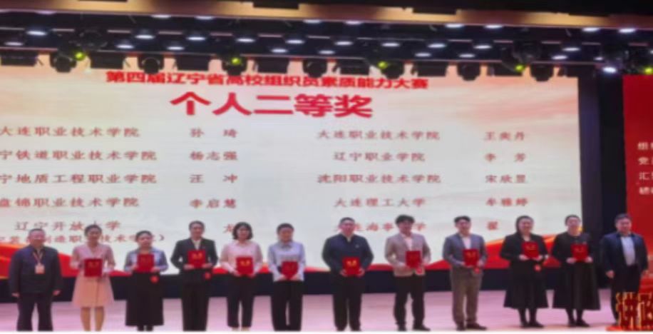 2025年10月31日至11月2日,由省委教育工委、省教育厅主办的第四届辽宁省高校组织员素质能力大赛在东北大学成功举办,我校荣获高职院校组集体二等奖,杨志强同志荣获个人二等奖,陈炳岐同志荣获个人优秀奖。两名参赛选手在比赛中认真准备、团结协作、沉着应战,1名参赛选手成功挺进决赛,展现出我校组织员队伍良好的精神面貌。