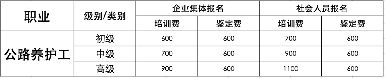 七、公路养护工职业等级认定收费标准(单位:元)