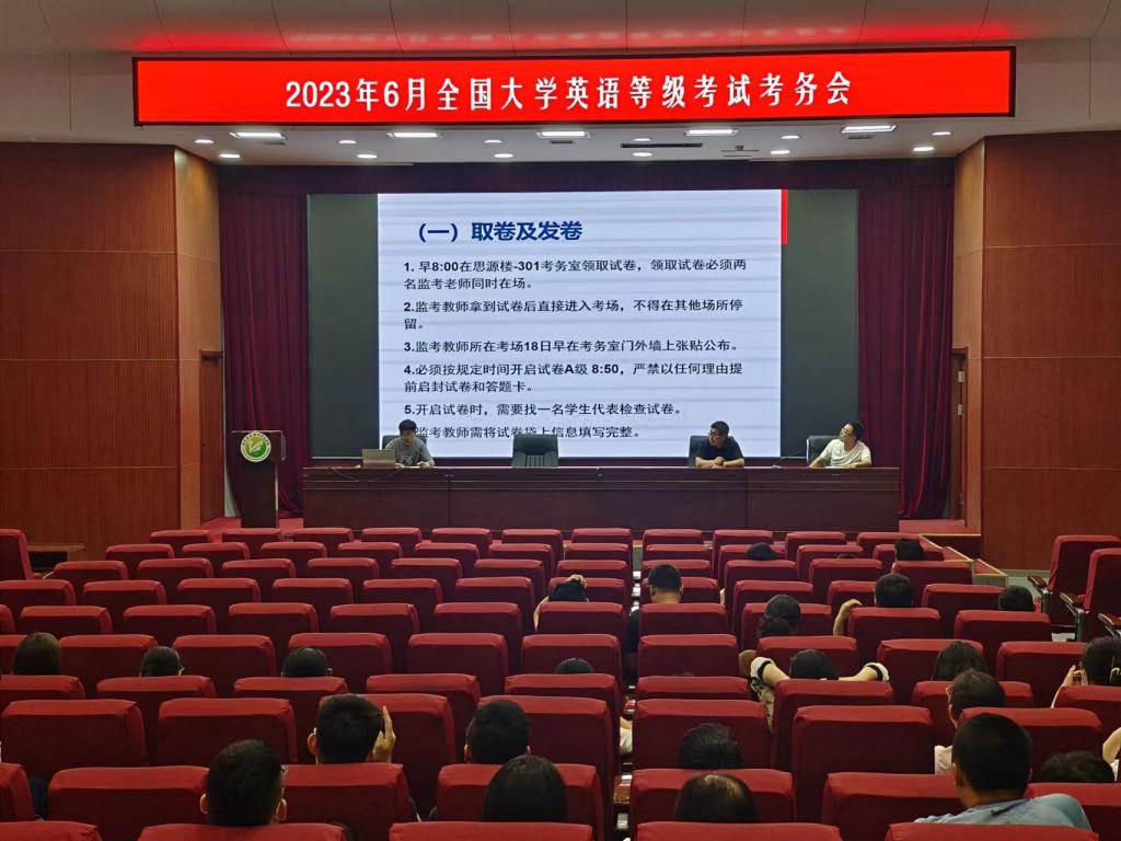 为深入贯彻落实《关于做好辽宁省2023年上半年全国大学英语四、六级考试和高等学校英语应用能力考试考务管理工作的通知》及相关文件要求,确保考试顺利实施,学校制定了详细的考试组织方案,完善了考试工作流程,并对考前准备、考场布置、试卷取送、过程实施、试题保密等工作环节进行了全面部署和排查。考前召开考务会,对全体监考老师和工作人员进行细致培训,明确考务人员职责及考场纪律,落实考试各环节工作内容,精准落实责任,提高服务保障,为考试顺利进行奠定了的基础。