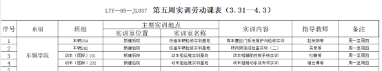 定于本学期第二教学周(2025.3.31-4.3)由车辆23-4班进行《客车塞拉门维护与检修》实训,车辆24-2班进行《转向架落成检查》实训,动车(国际)23-1班进行《动车组辅助控制系统》实训,动车(国际)23-2班进行《动车组制动系统》专项实训。望各位同学、班主任和任课教师周知。