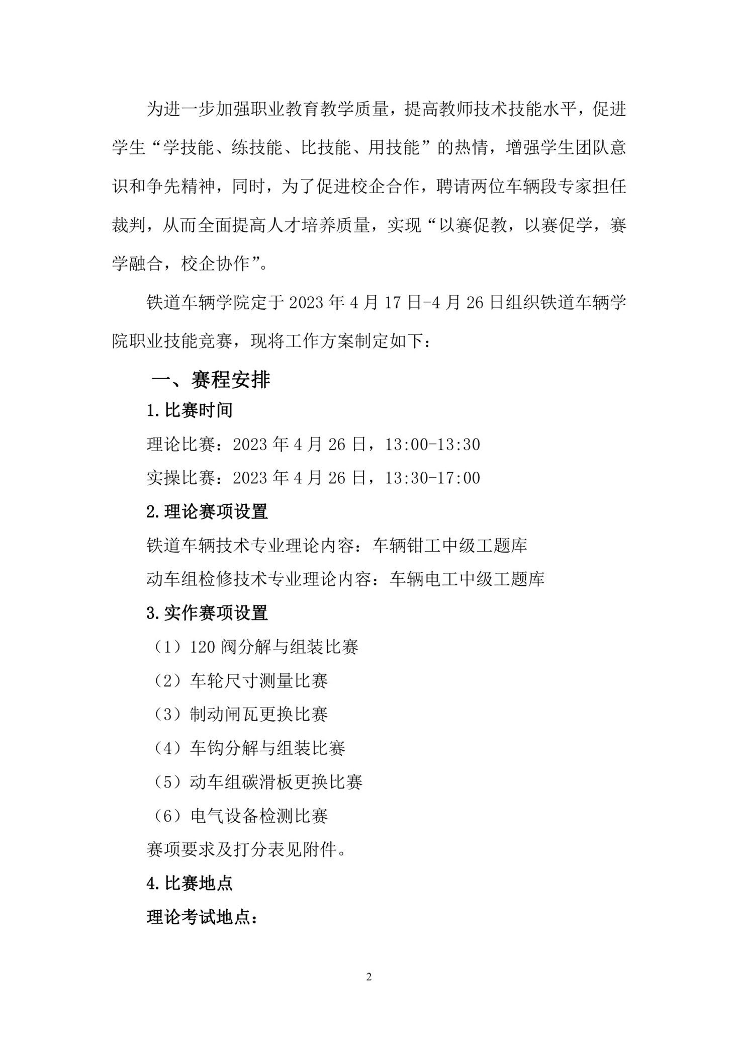 2023年铁道车辆学院学生职业技能竞赛工作方案
