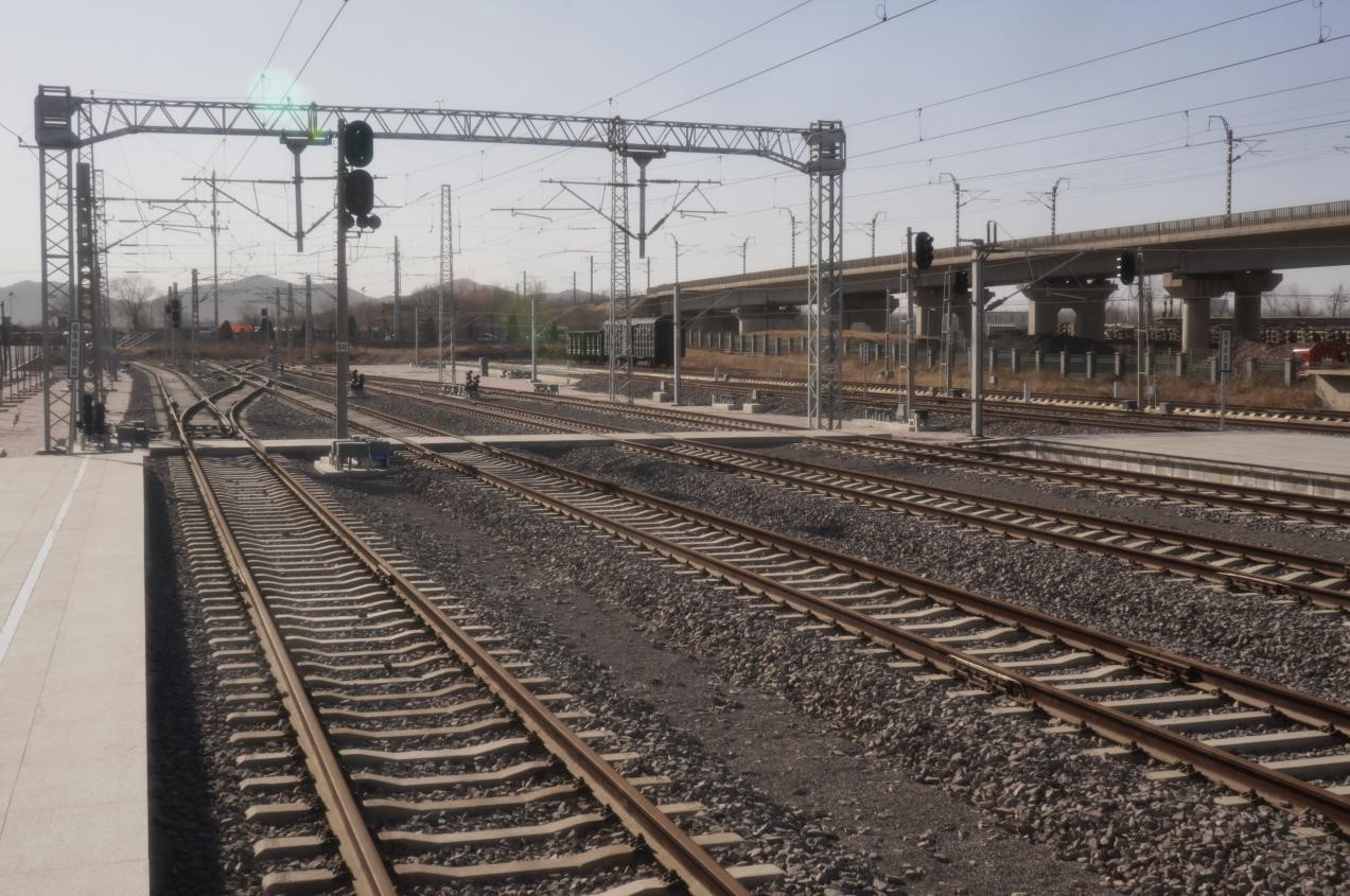 站场内设有信号机、转辙机、轨道电路,通过室内机械室集中控制,可实现道岔操纵、进路办理、信号开放。