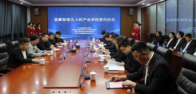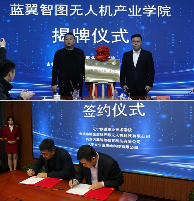 蓝翼智图无人机产业学院由学校与吉林蓝航天际、辽宁众云图、西安天翼智三家无人机企业联合成立,标志着学校与企业的合作迈向了一个新的台阶,是落实党的二十大精神,深入推进产教融合、校企合作、科教融汇的务实举措。