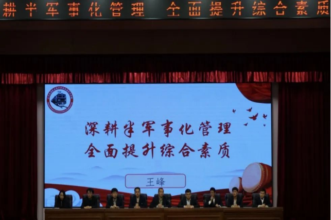 会议第二项议程,由21级辅导员代表王峰以“深耕半军事化管理 全面提升综合素质”为题作报告。他指出,学校70余年的职教实践中,始终坚持传承铁路企业文化,长期践行军队优良作风,凝炼与构建“1234”半军事化学生管理体系,打造辽铁院学生管理特色品牌,成为行业院校的典范,在全国享有很高的声誉。他强调,作为铁道机车学院的学子应该在日常生活中践行“大道致远,铁律育人”半军事化管理特色品牌,全面提升自身综合素质。