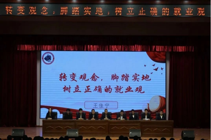 会议第一项议程,由20级辅导员代表王佳宁以“树立正确就业观”为题作报告。首先,介绍了今年就业形势及各班级就业情况;其次,介绍了目前来校招聘的企事业单位;最后,指出了我们与就业单位为双向选择,建议同学们更加深入地了解企业,并结合自身实际,脚踏实地,明确方向,树立正确的就业观。