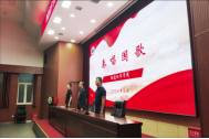 大会伊始,全体起立,奏唱国歌。