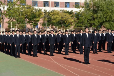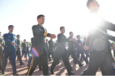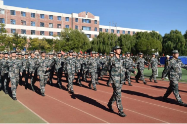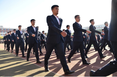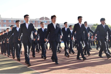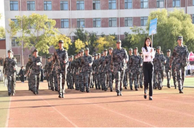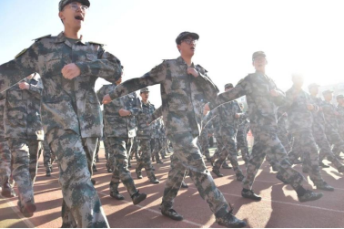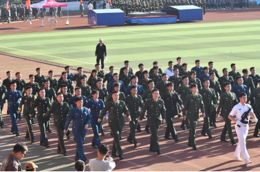 看,正阔步而来的是铁道机车学院的第一方队,他们由退役军人和大三学生代表组成。