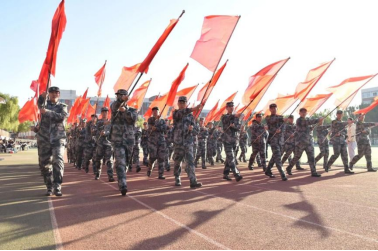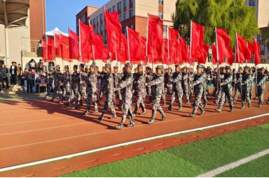 在这片充满拼搏与奋斗的赛场上,有一片鲜红,如同烈焰般燃烧!看,那是我们机车学院的红旗方队!