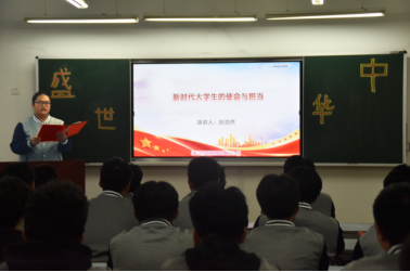 (图十三:刘浩然同学《新时代大学生的使命与担当》主题演讲)