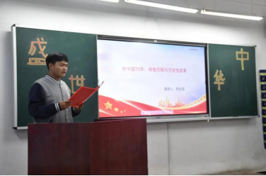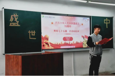 为庆祝中华人民共和国成立75周年,铁道机车学院机车24-2班开展《辉煌七十五载 青春向祖国》团日活动,共同庆祝祖国75岁生日。活动由机车24-2团支部书记安佳旭主持。