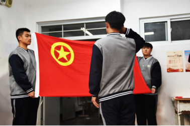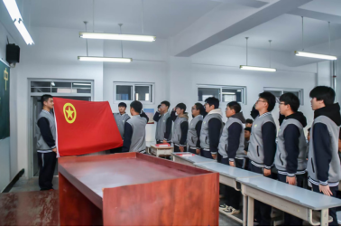 “我是中国共产主义青年团团员,我宣誓,我志愿加入中国共产主义青年团……”饱含坚定的目光,满怀激动的心情!安佳旭走到团旗前,带着所有团员共同重温入团誓词!