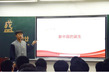 1949年10月1日的开国大典,毛泽东主席升起第一面五星红旗,象征着新中国的诞生,标志着中国人民从此刻站起来了。安佳旭为同学们展示相关图片并介绍了第一届中国人民政治协商会议。