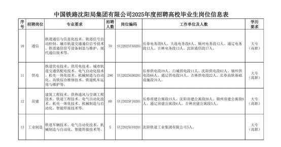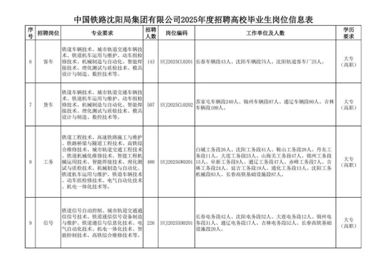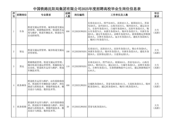 中国铁路沈阳局集团有限公司根据企业发展需要,拟招聘全日制普通高等院校大专(高职)学历毕业生,现将有关事项公告如下: