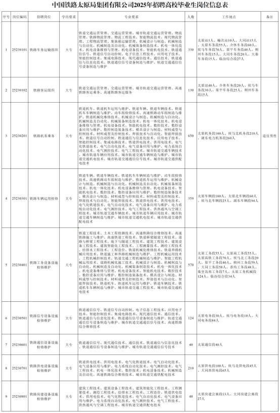 (五)中国铁路太原局集团有限公司不向应聘者收取任何费用,不指定辅导用书,不举办也不委托任何机构或个人举办任何形式的辅导培训班,请提高警惕,谨防冒名诈骗。