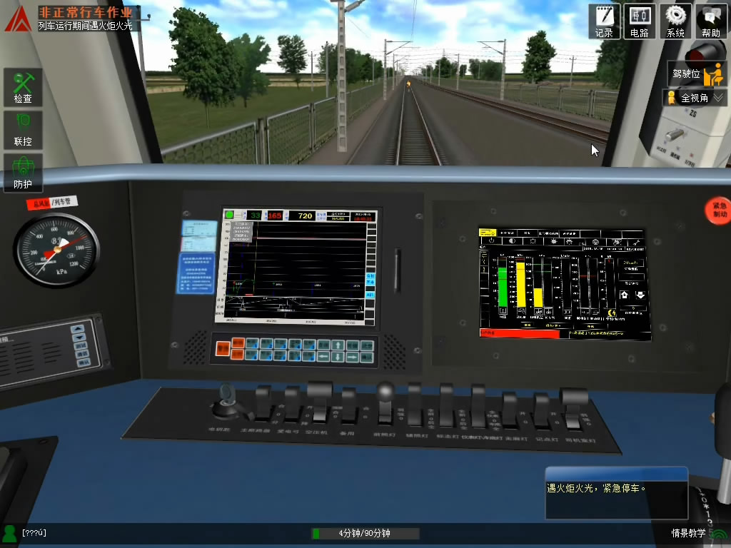 机车交互式演练实训系统以影像、图形图像、声音以及可沉浸其中的虚拟现实场景、模拟仿真设备为手段,逼真再现列车操纵界面、操作显示设备、控制逻辑以及线路场景,可以全面、真实地模拟列车在各种运行环境下的运行状况、操纵特性、突发事件和列车事故,是一个情景化、具备教学、演练、考核多功能为一体的综合培训系统。