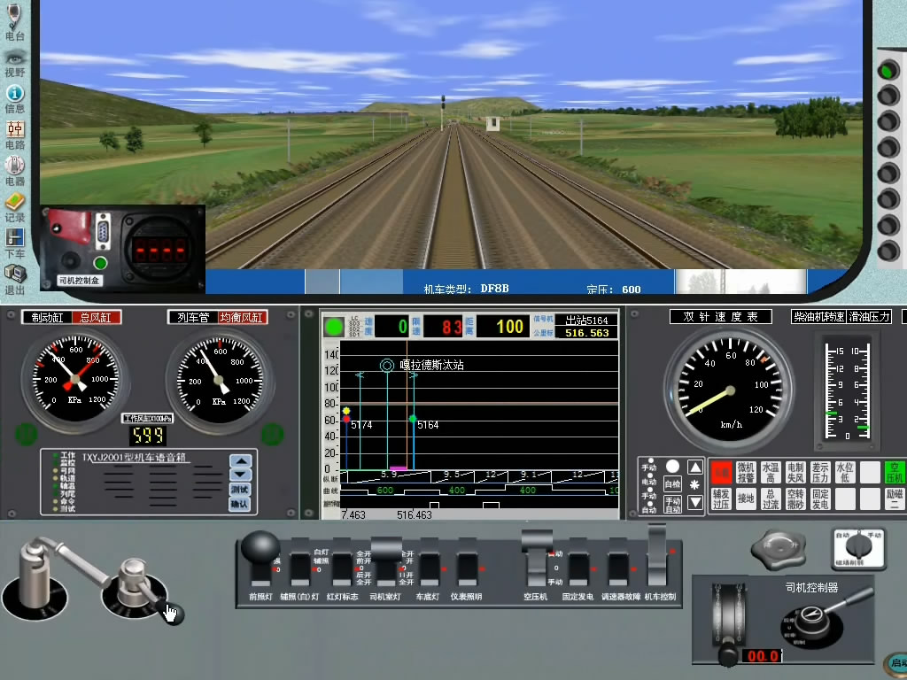 HXD3B型电力机车模拟驾驶训练系统拥有与真车1:1的司机室和司机操纵台,并采用计算机仿真技术模拟地理环境、机车模型、天气状况、站场、区间、信号机、道岔等线路状况,使学生有身临其境的视觉效果。能够实现列车操作方法演练,主要包括列车发车准备、列车正常运行、途中与调度联络、停车对标、TCMS、LCDM、HMI显示屏的操作设置等。还能够演练运行中应急故障、突发事件和非正常情况的处理等。