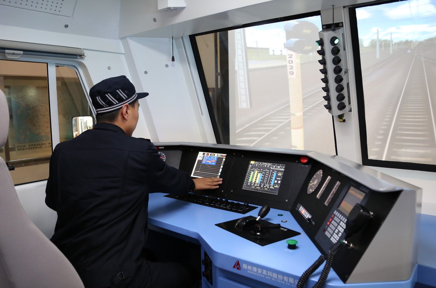 该实训中心为学生创建了仿真的机车驾驶环境,能够有效完成机车模拟驾驶、机车控制系统及制动系统故障判断与处理等实训演练。同时服务于机车一次乘务作业等专业核心能力培养课程的一体化教学需要,也为机务岗位职工培训提供了良好的条件。