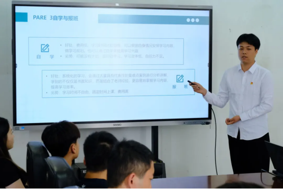 会议伊始,邀请成功通过专升本考试被沈阳工程大学录取的王新学长进行经验分享。他通过下定决心、积极备考、准备报名、填报志愿四个阶段分享了专升本经历。确定要进行专升本备考,要先了解考试大纲,然后制定好学习计划,选对教材,进行多轮复习,也可以报名培训班。同时提醒大家要重视基础知识,做错的题要赶紧改正,合理安排时间,调整好心态,提前适应考试的节奏。