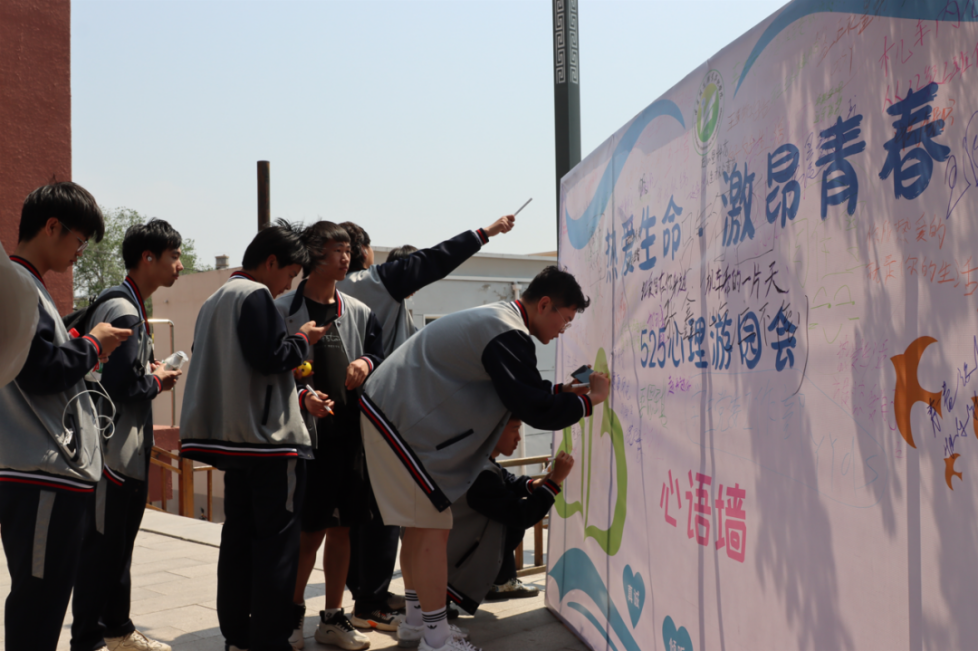 心语墙上的留言带着心愿、带着祝福、带着憧憬,带着同学们的积极向上的青春力量。这点点滴滴的文字发于内心,写于笔端,在夏风的热烈中闪烁着光。