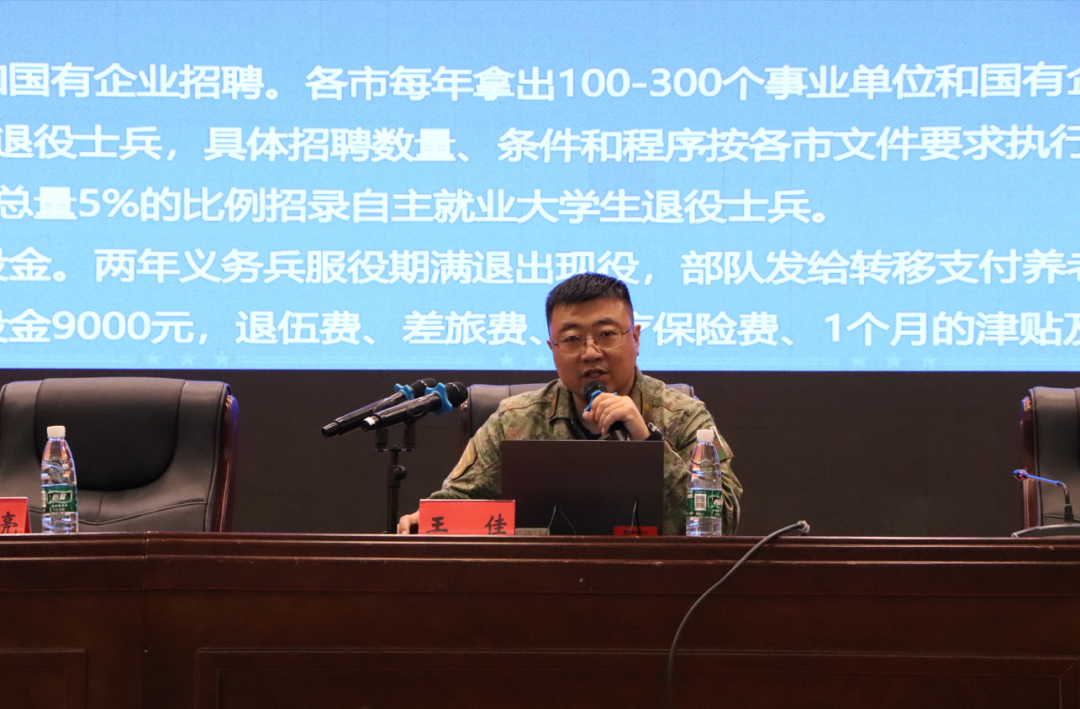 最后,王佳科长围绕征兵的标准条件,程序步骤和相关待遇等方面作政策宣讲。