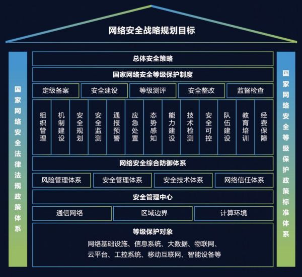 1、等级保护的基本要求、测评要求和安全设计技术要求框架统一,即:安全管理中心支持下的三重防护结构框架;