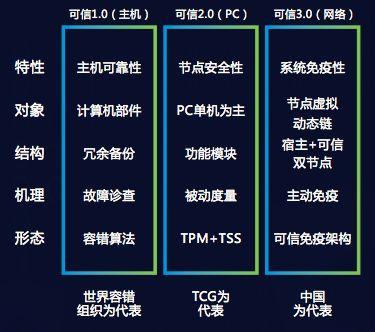 可信计算的基本思想是,首先在计算机系统中构建一个信任根,信任根的可信性由物理安全、技术安全和管理安全共同确保;再建立一条信任链,从信任根开始到软硬件平台、到操作系统、再到应用,一级度量认证一级、一级信任一级,把这种信任扩展到整个计算机系统,从而确保整个计算机系统的可信。目前国内可信计算已进入3.0时代。